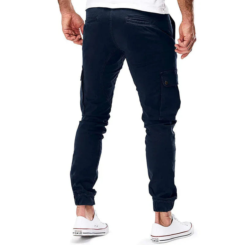 Dessa joggingbyxor för män ger en stilren streetwear-titta med extra funktion. Med cargodetaljer och smal passform passar de perfekt för vardagsanvändning. Oavsett om du ska ut eller bara ta det lugnt, smälter de enkelt in i garderoben.